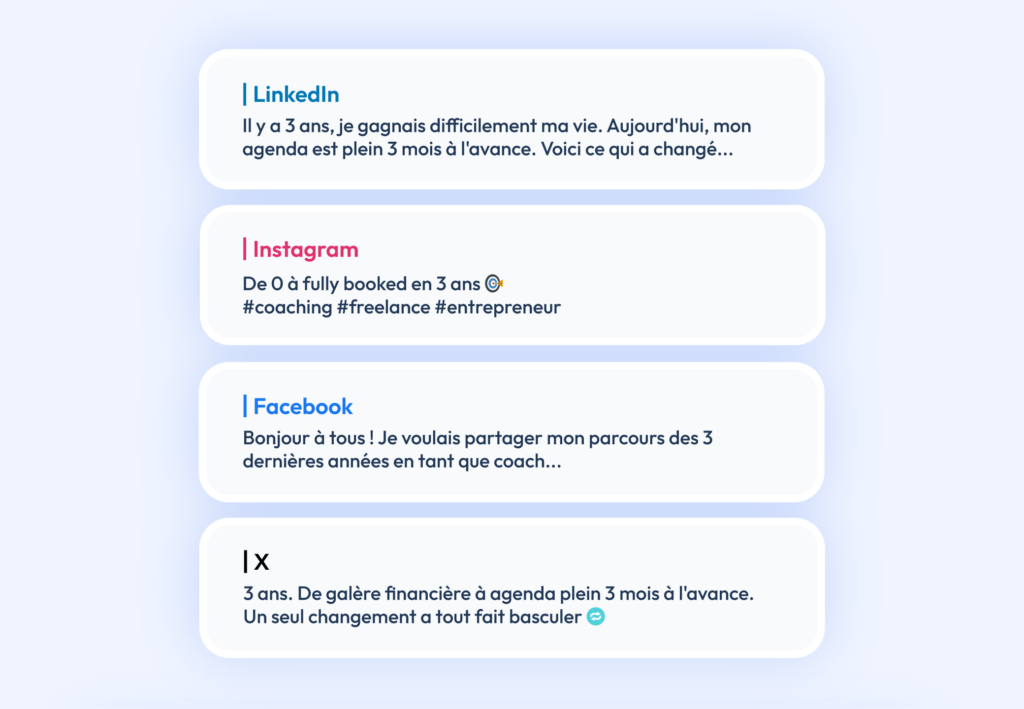 Générez des posts prêts à publier pour vos réseaux sociaux